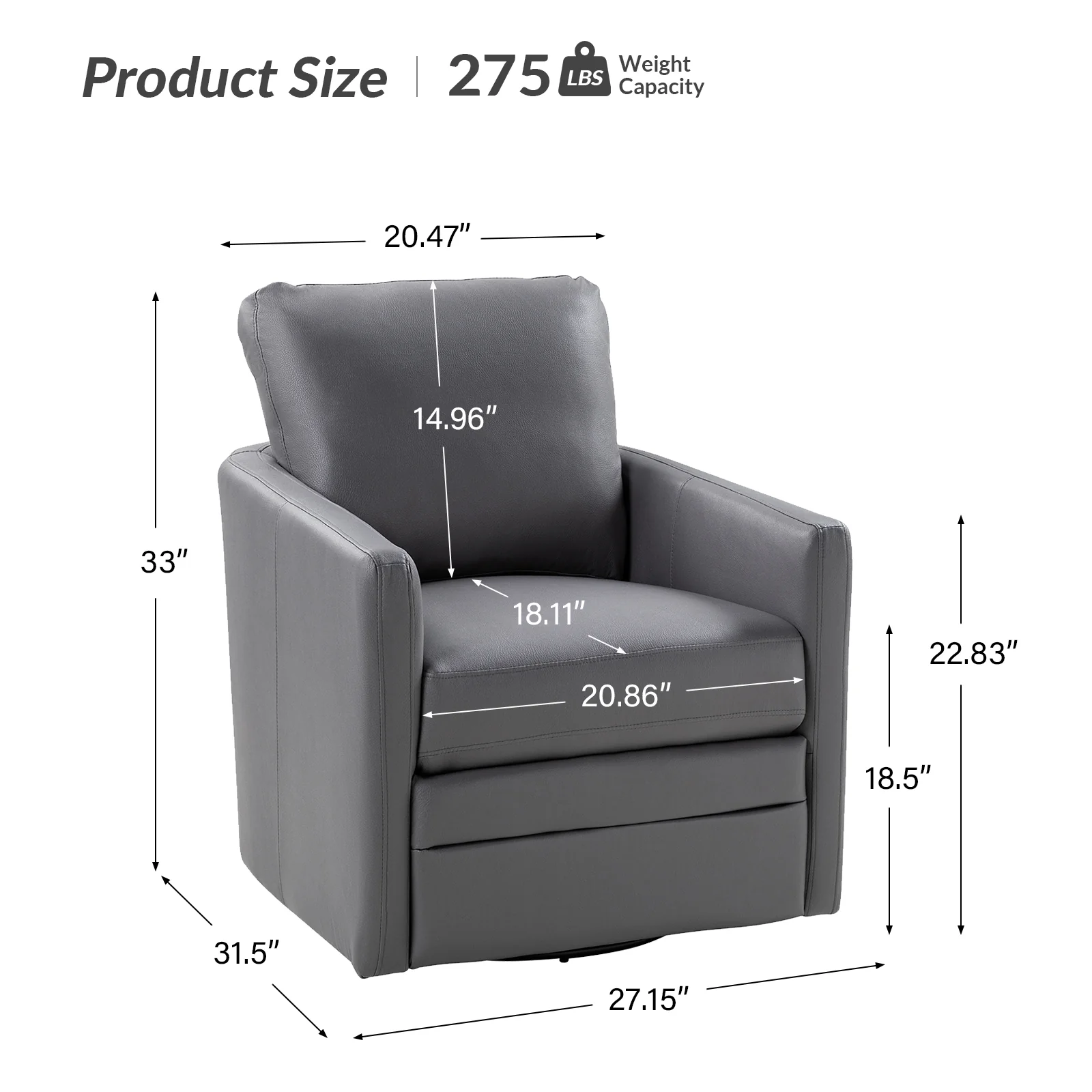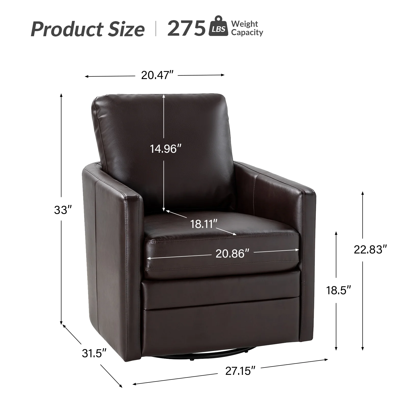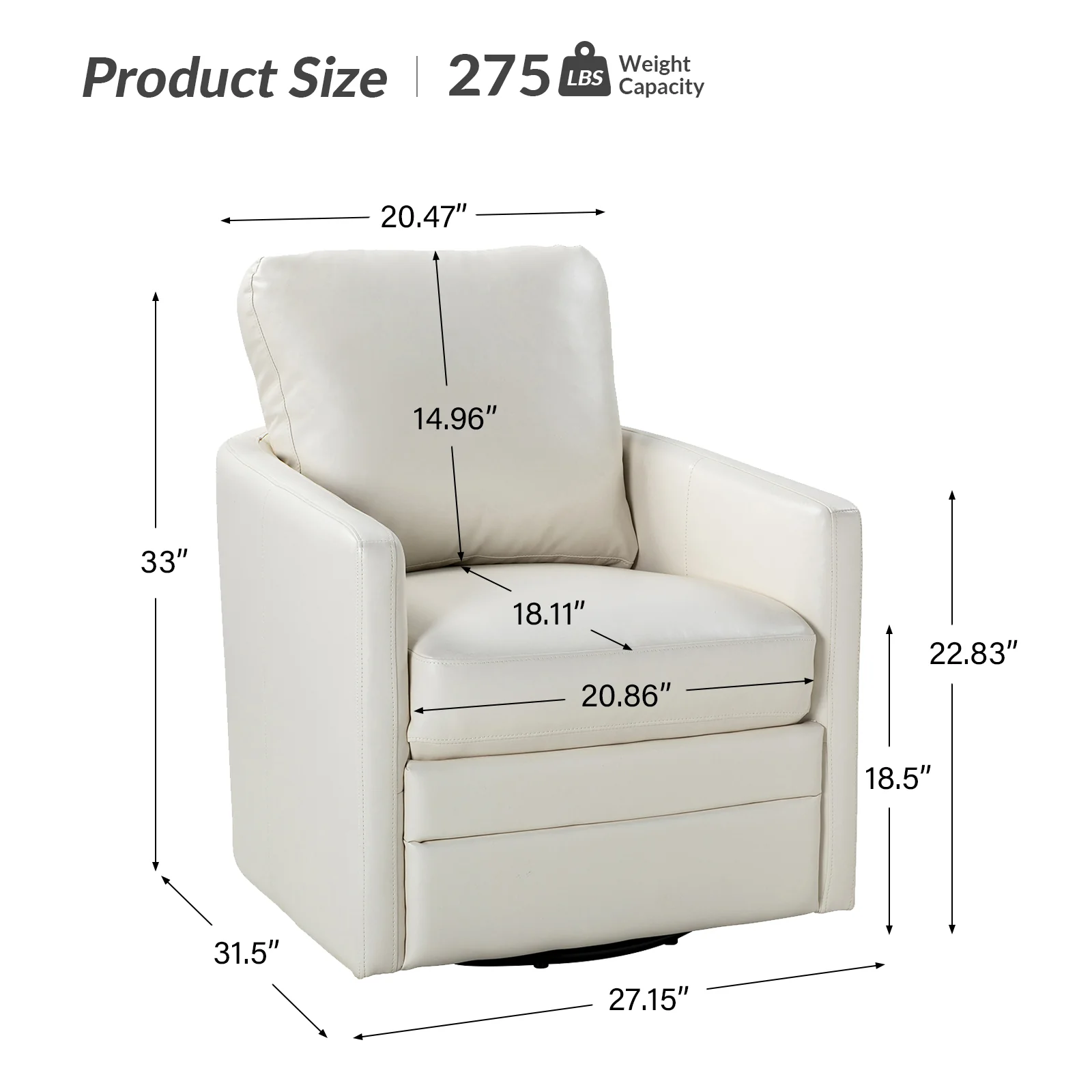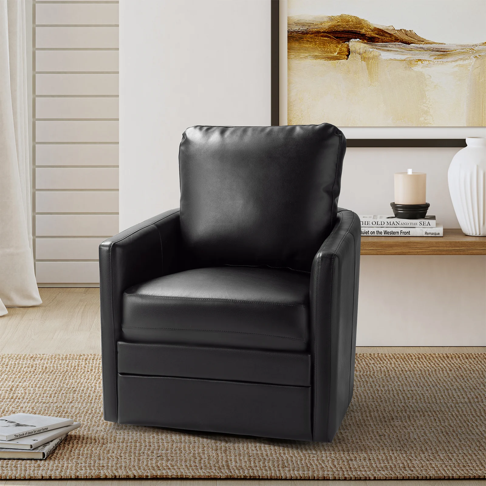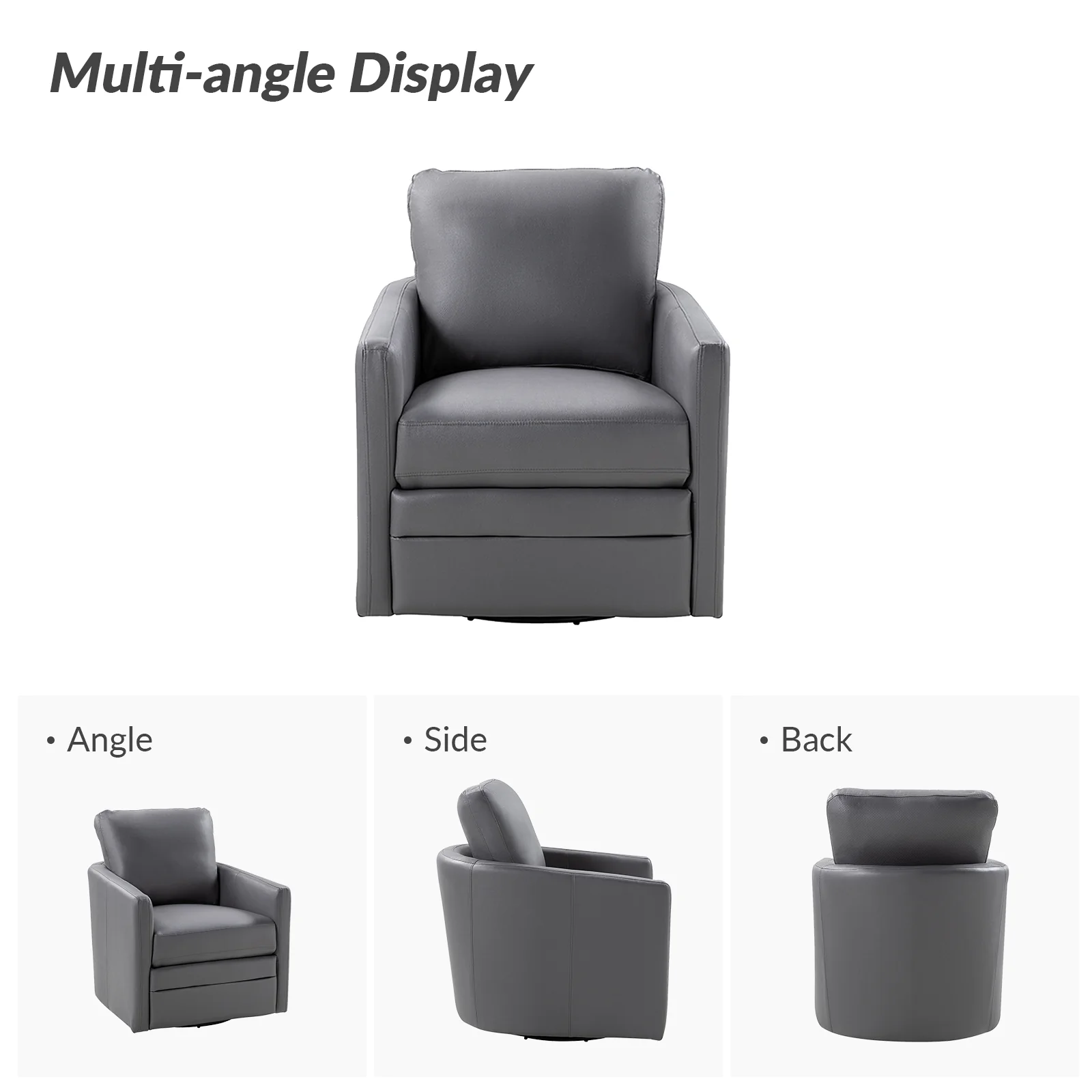 This swivel chair features PU leather upholstery and a sleek metal base for a gorgeous look in your living room. Its frame is made from solid and manufactured wood, and its circular metal base has a black finish that complements any color palette. The back cushion can not be fixed so you can remove it as your need, and the core can take out. It allows you to rest in a variety of ways and they can enhance comfort, durability, and resistance to the tests of time. The chair's comfort belies its sturdy and durable PU, built-in pocket spring, and sturdy construction. Let your body sink into the foam-filled soft upholstery, and recline the back for the ultimate in relaxation after a stressful day. This swivel chair will create a cozy, contemporary look for years to come.