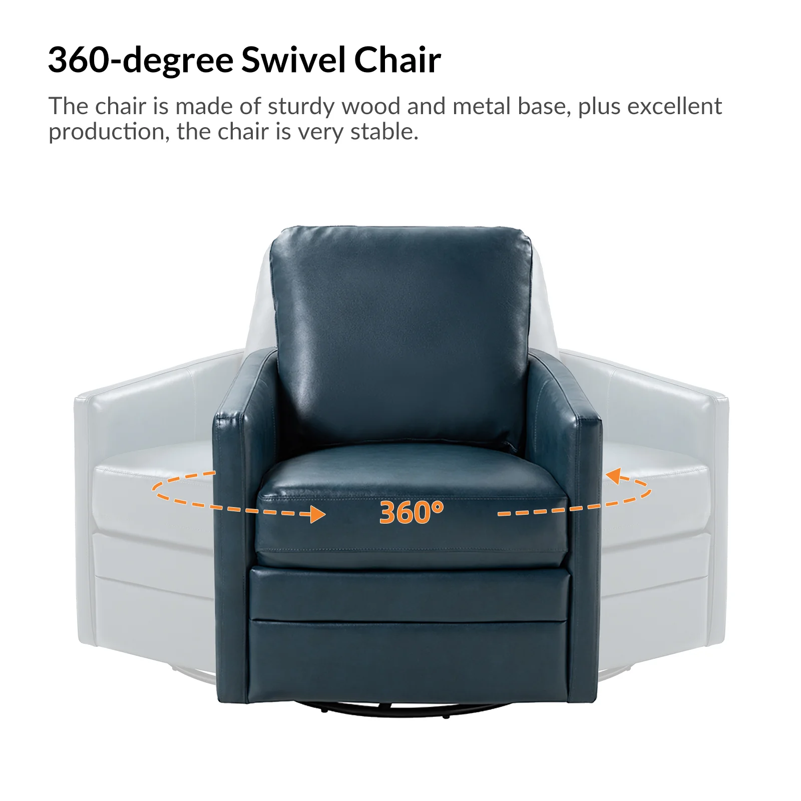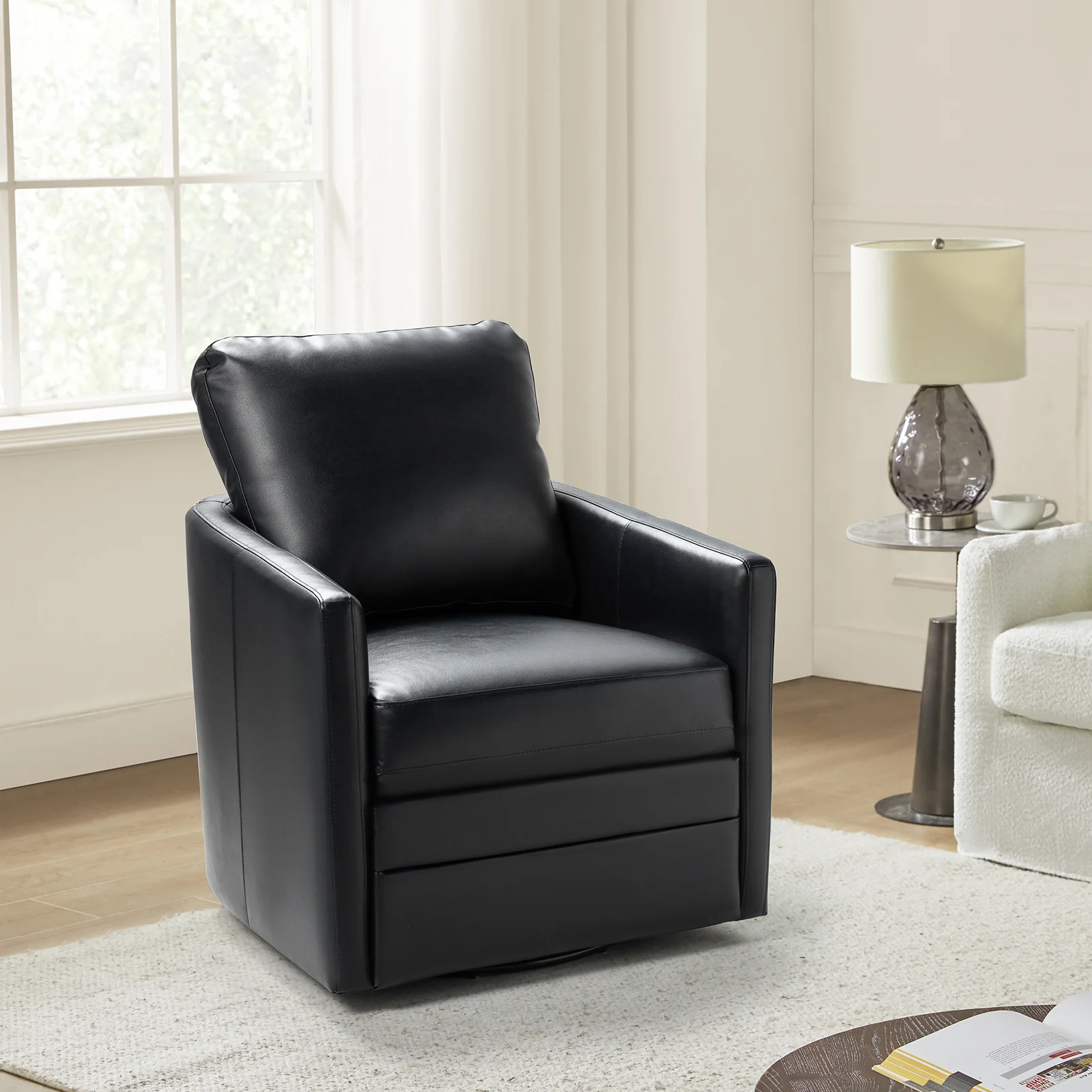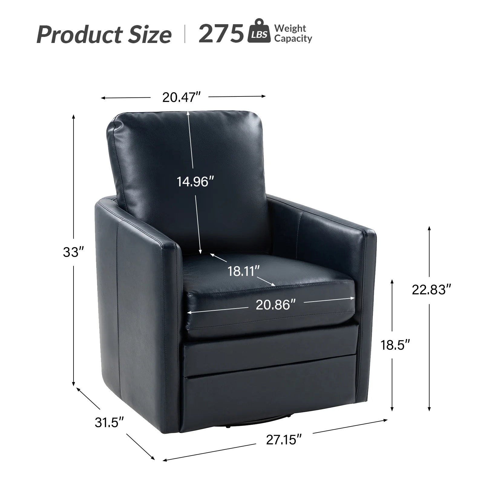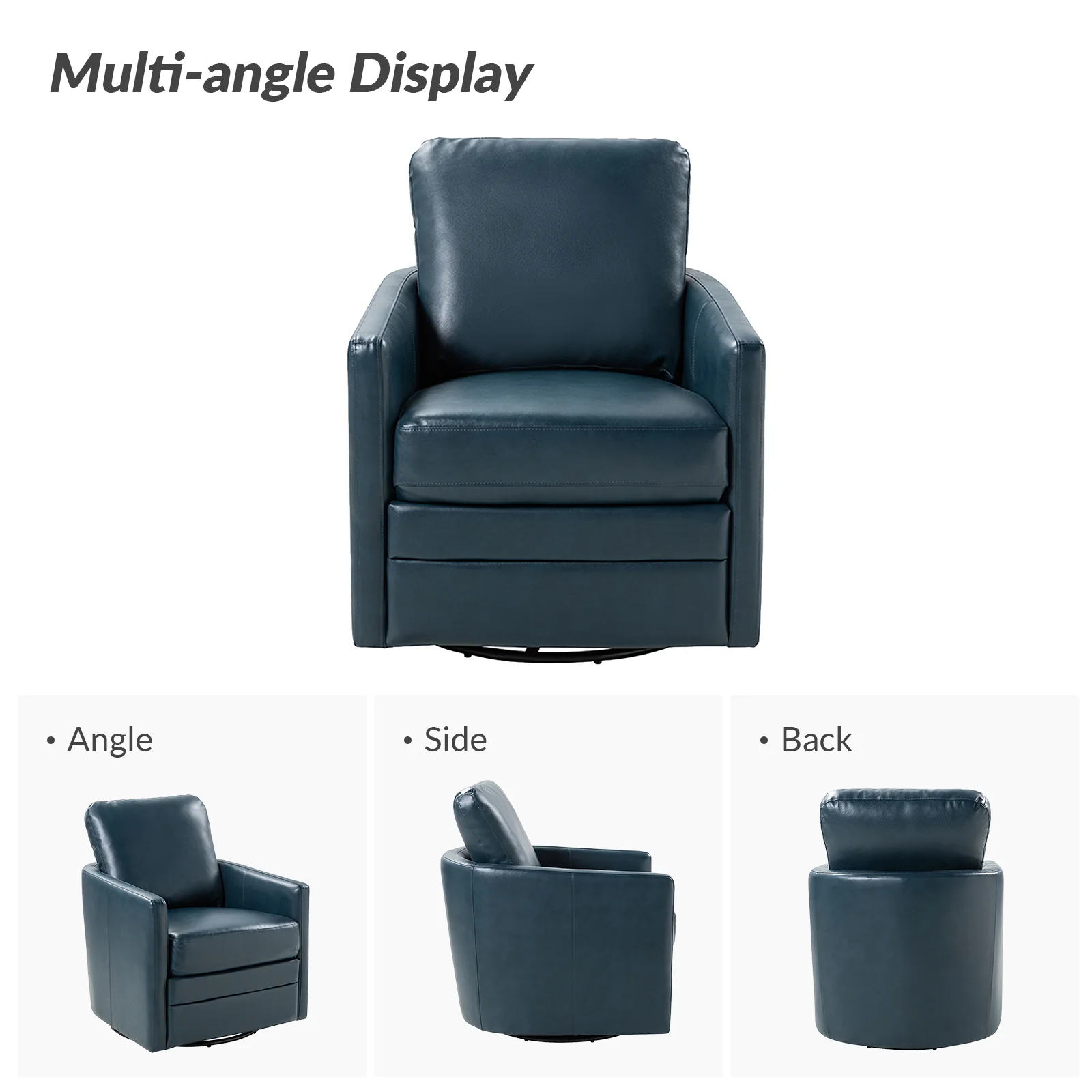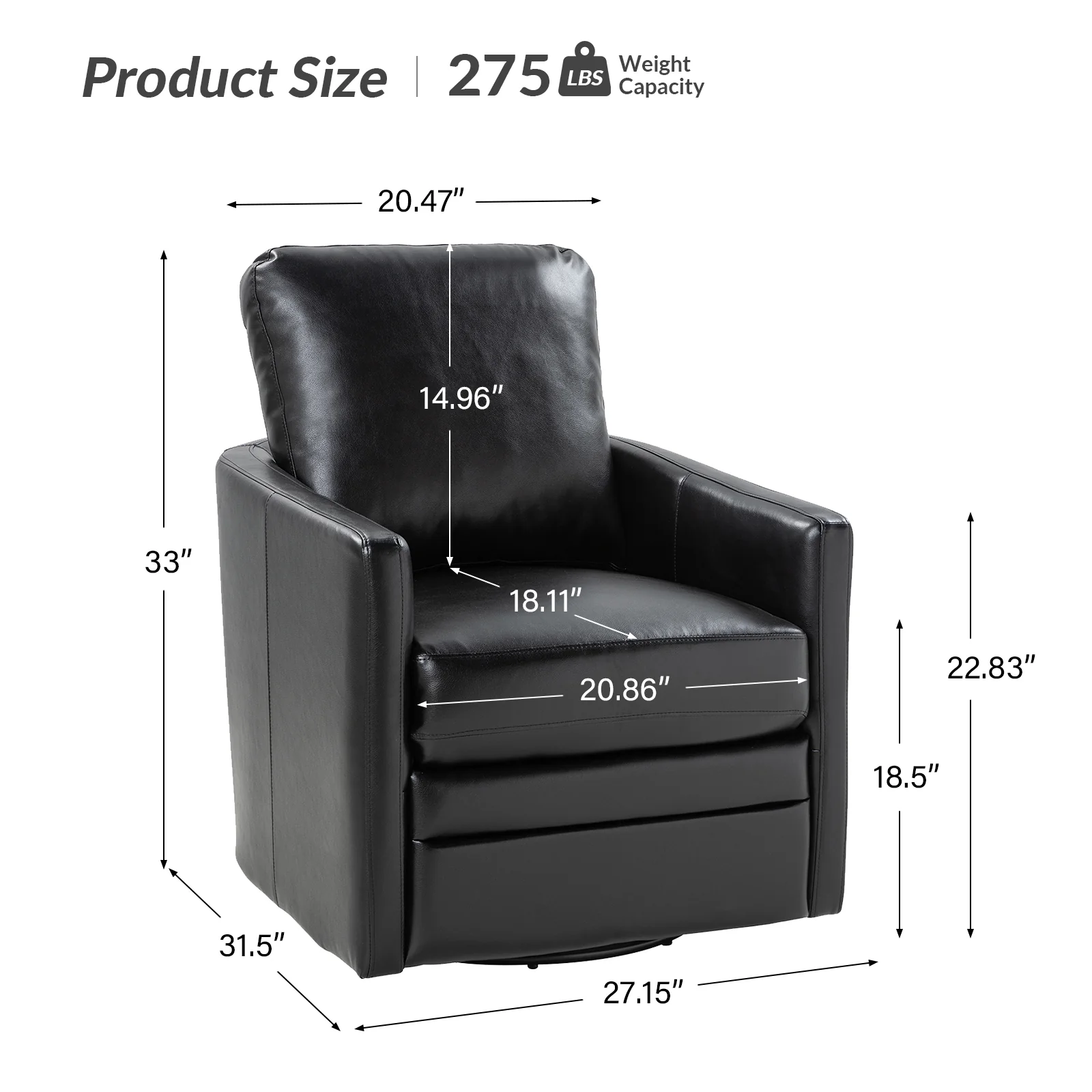 This swivel chair features PU leather upholstery and a sleek metal base for a gorgeous look in your living room. Its frame is made from solid and manufactured wood, and its circular metal base has a black finish that complements any color palette. The back cushion can not be fixed so you can remove it as your need, and the core can take out. It allows you to rest in a variety of ways and they can enhance comfort, durability, and resistance to the tests of time. The chair's comfort belies its sturdy and durable PU, built-in pocket spring, and sturdy construction. Let your body sink into the foam-filled soft upholstery, and recline the back for the ultimate in relaxation after a stressful day. This swivel chair will create a cozy, contemporary look for years to come.