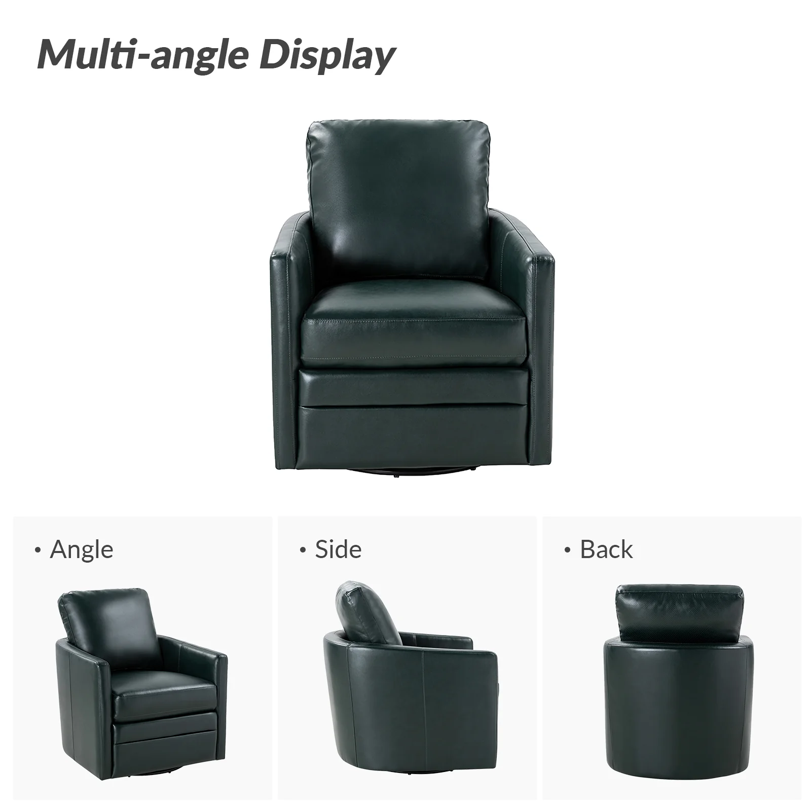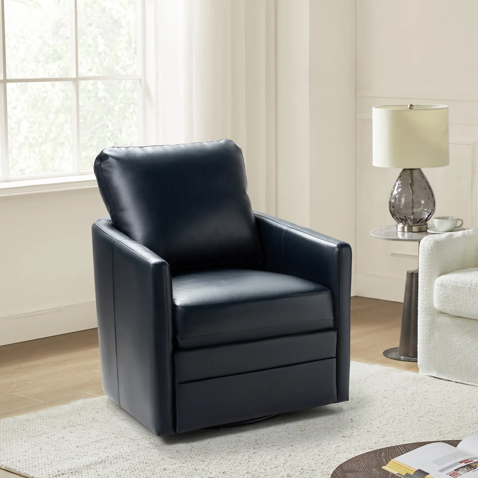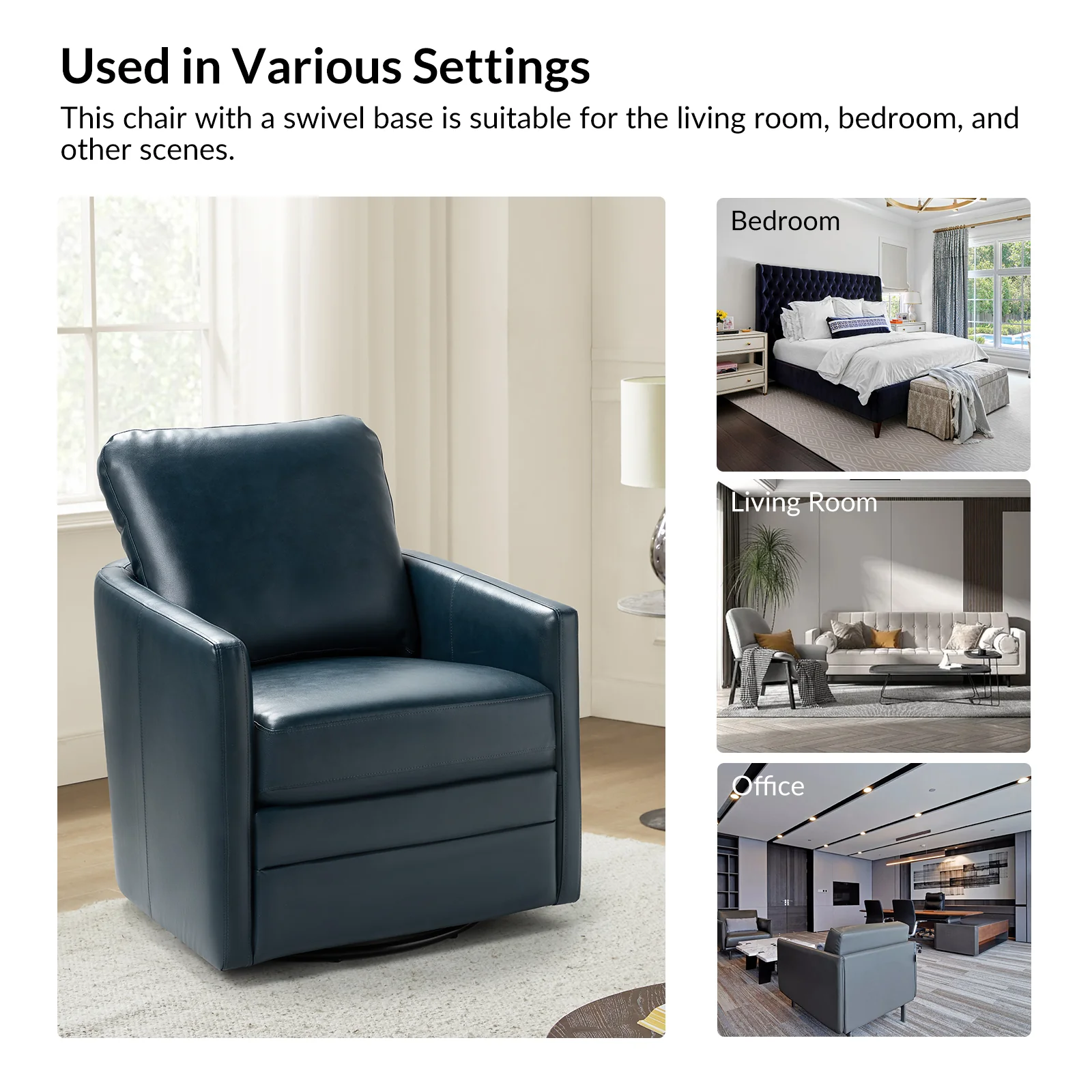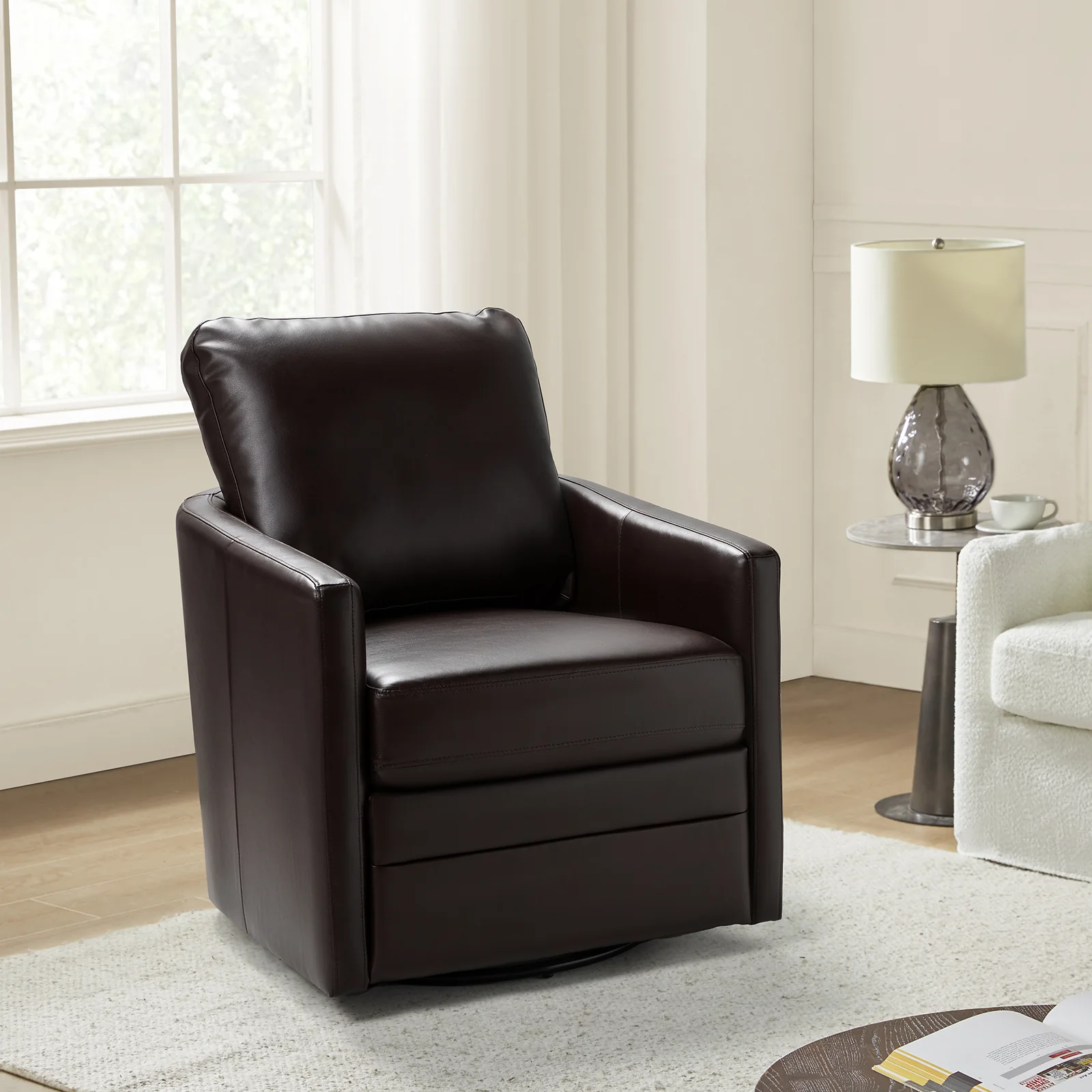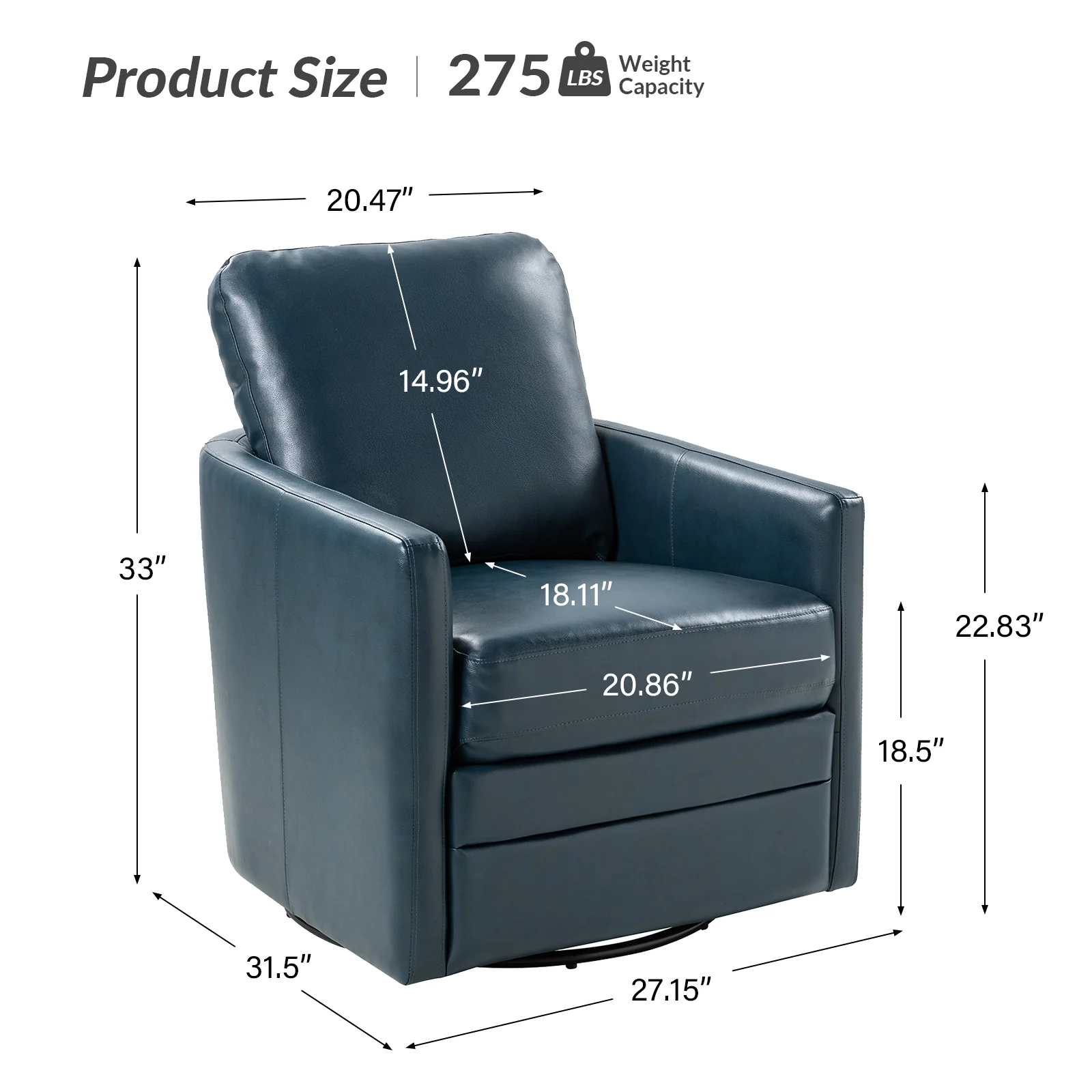 This swivel chair features PU leather upholstery and a sleek metal base for a gorgeous look in your living room. Its frame is made from solid and manufactured wood, and its circular metal base has a black finish that complements any color palette. The back cushion can not be fixed so you can remove it as your need, and the core can take out. It allows you to rest in a variety of ways and they can enhance comfort, durability, and resistance to the tests of time. The chair's comfort belies its sturdy and durable PU, built-in pocket spring, and sturdy construction. Let your body sink into the foam-filled soft upholstery, and recline the back for the ultimate in relaxation after a stressful day. This swivel chair will create a cozy, contemporary look for years to come.