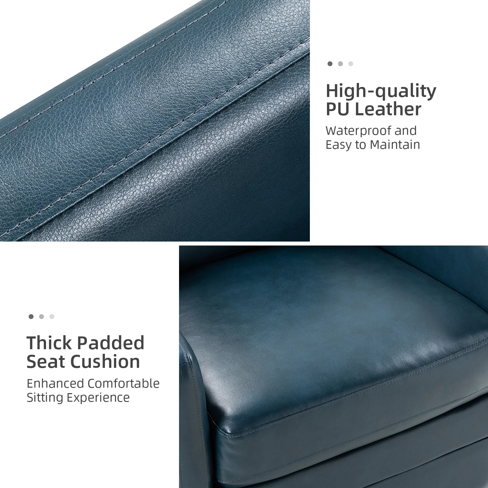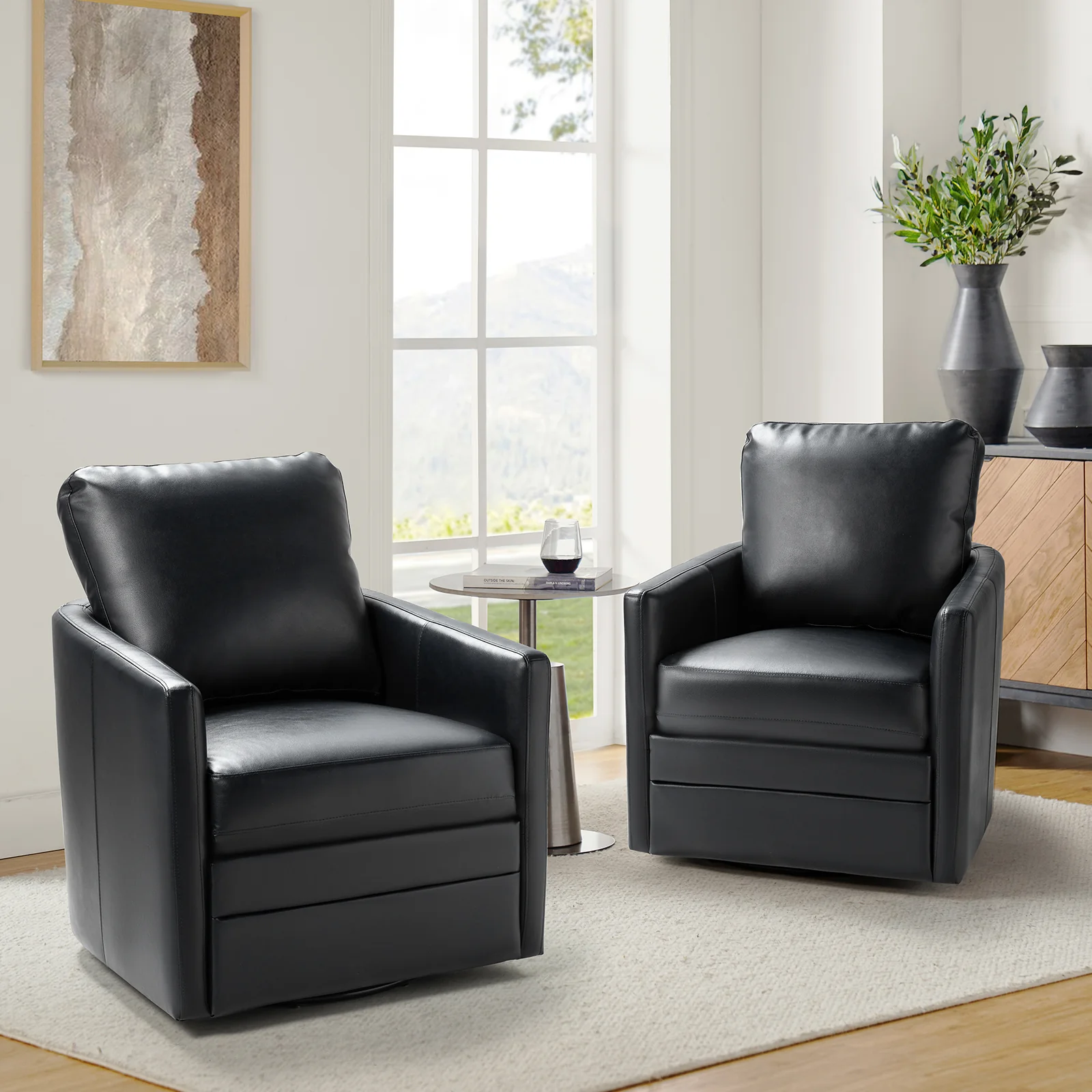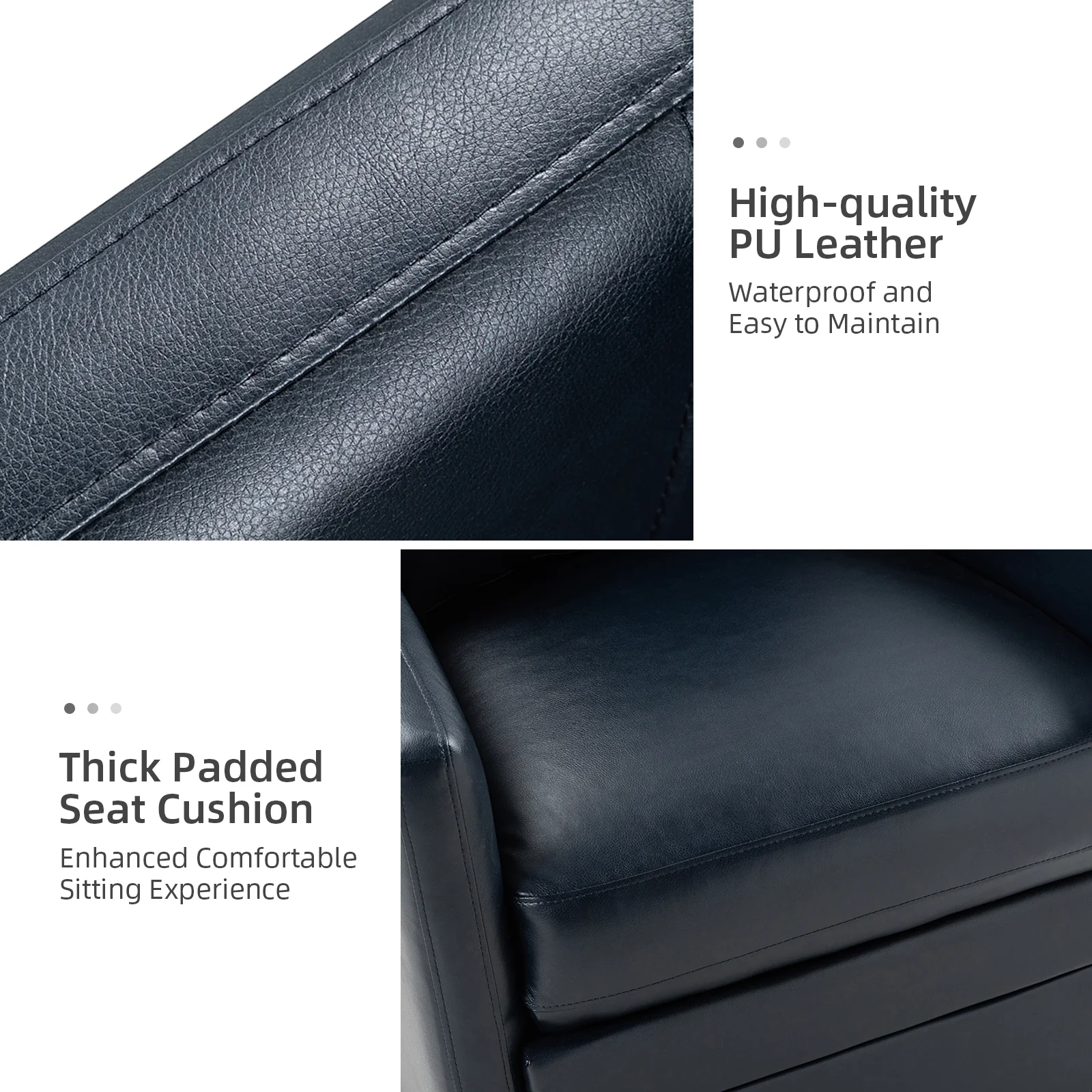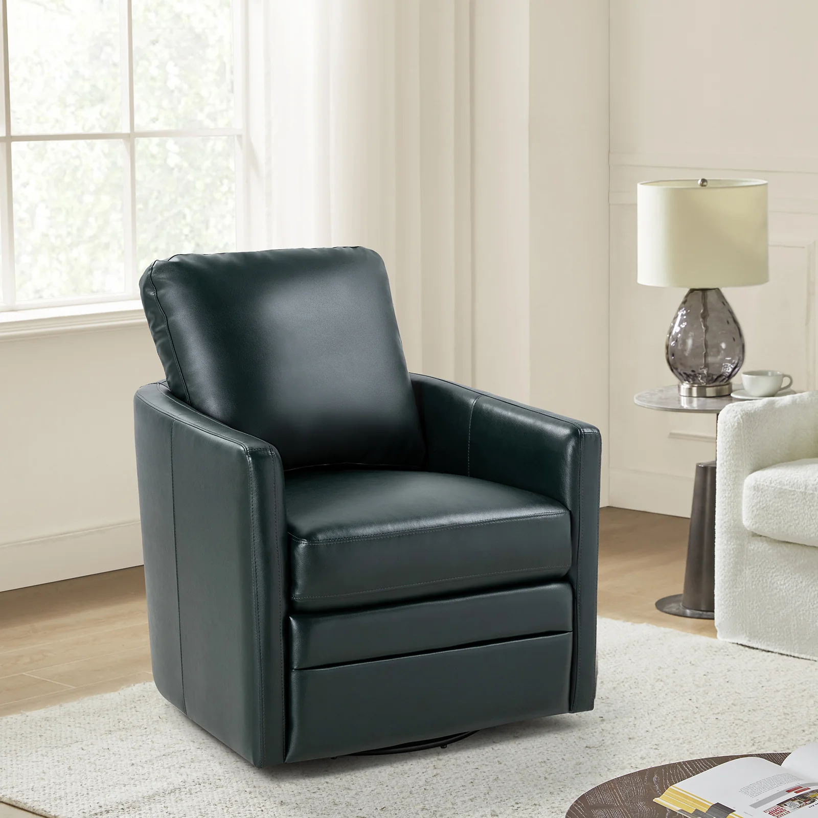 This swivel chair features PU leather upholstery and a sleek metal base for a gorgeous look in your living room. Its frame is made from solid and manufactured wood, and its circular metal base has a black finish that complements any color palette. The back cushion can not be fixed so you can remove it as your need, and the core can take out. It allows you to rest in a variety of ways and they can enhance comfort, durability, and resistance to the tests of time. The chair's comfort belies its sturdy and durable PU, built-in pocket spring, and sturdy construction. Let your body sink into the foam-filled soft upholstery, and recline the back for the ultimate in relaxation after a stressful day. This swivel chair will create a cozy, contemporary look for years to come.