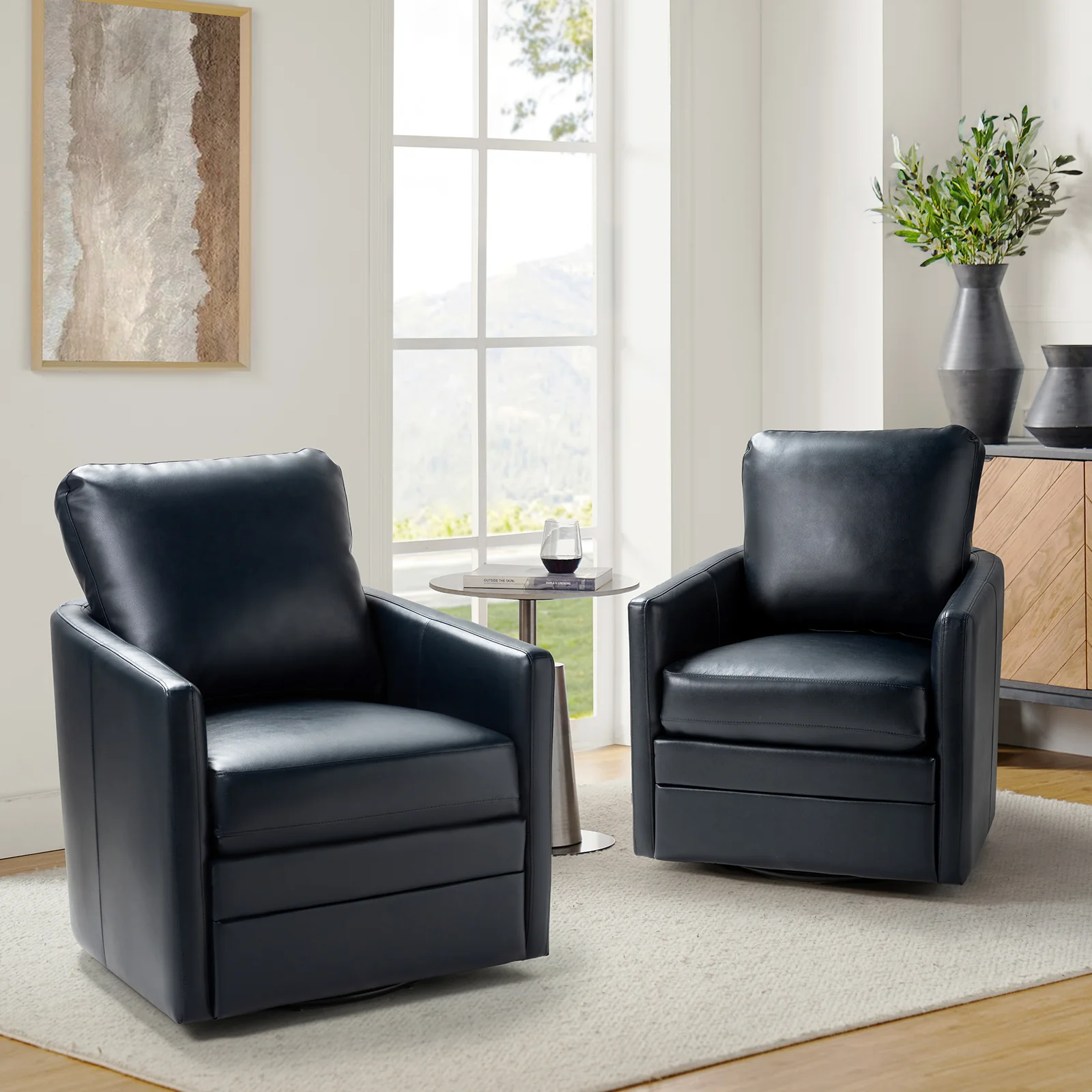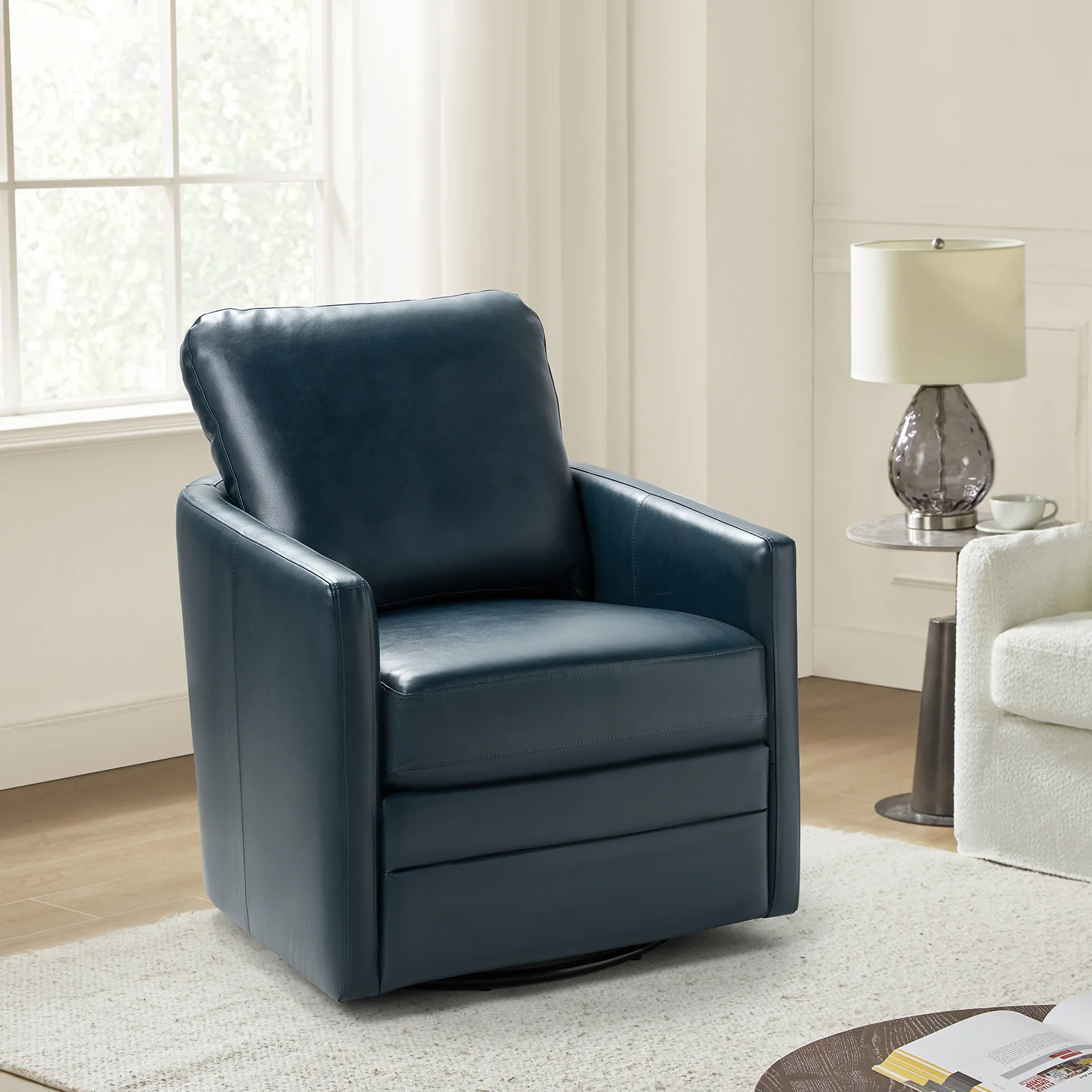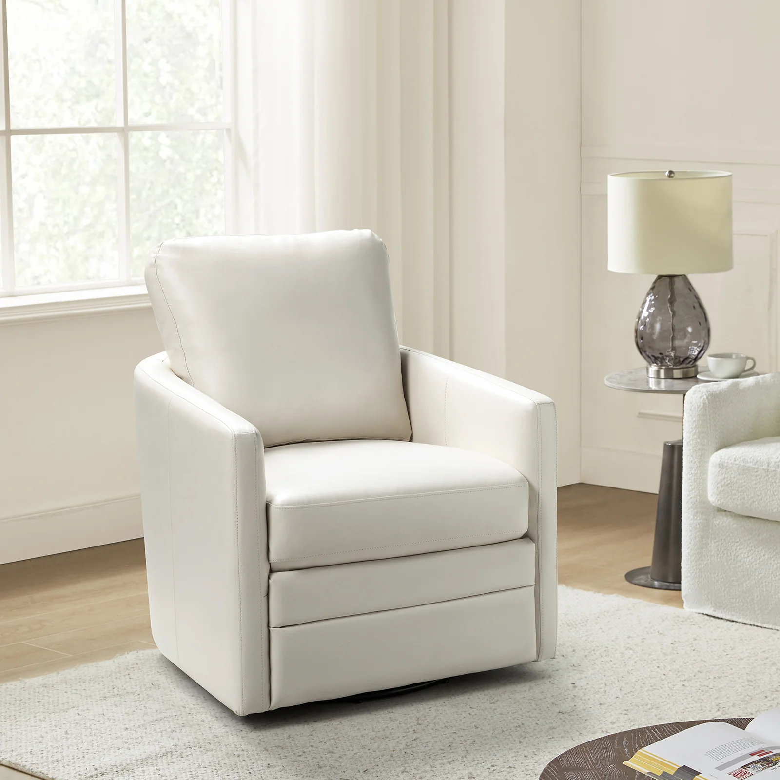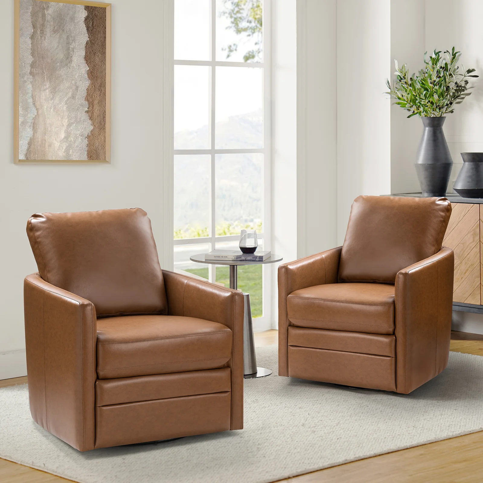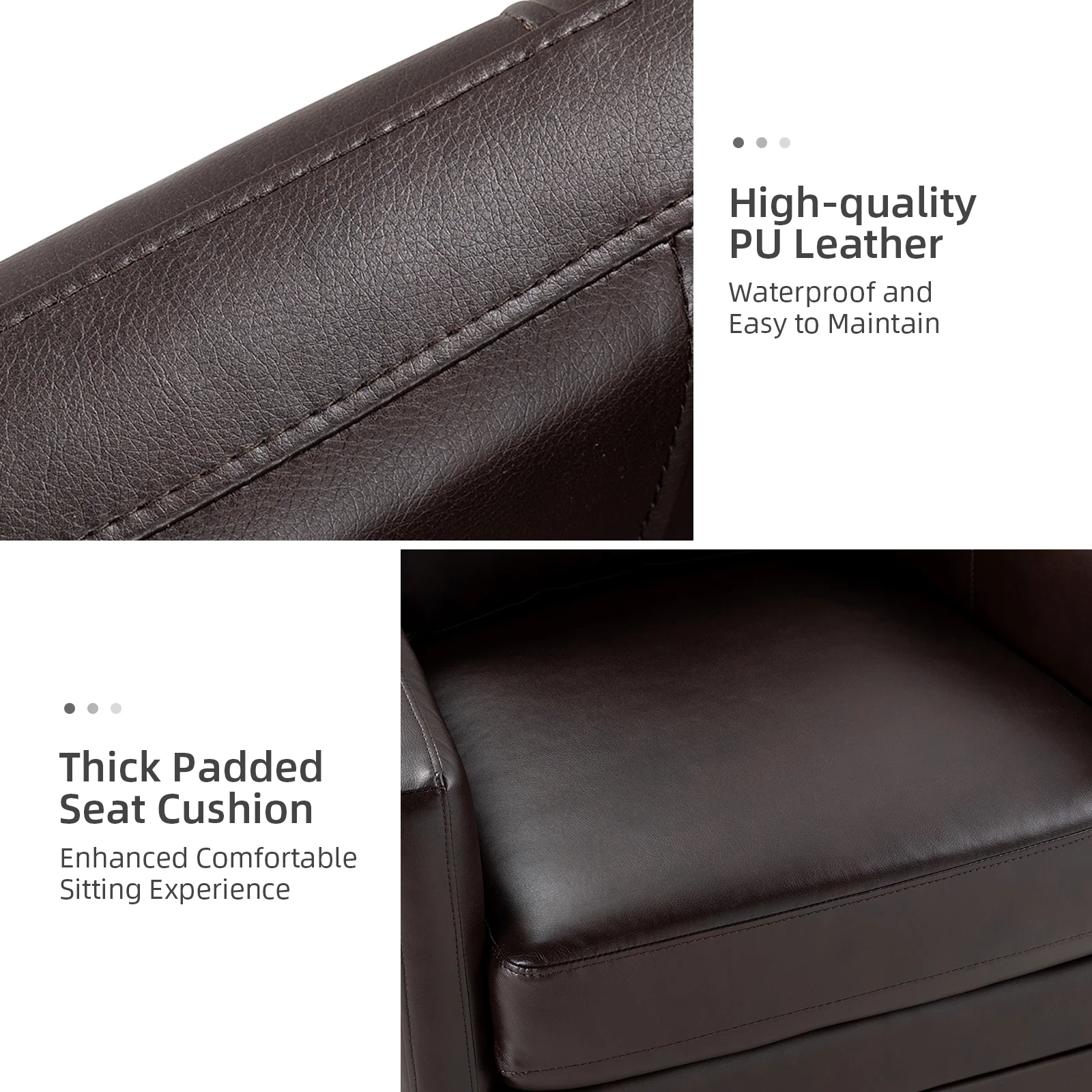 This swivel chair features PU leather upholstery and a sleek metal base for a gorgeous look in your living room. Its frame is made from solid and manufactured wood, and its circular metal base has a black finish that complements any color palette. The back cushion can not be fixed so you can remove it as your need, and the core can take out. It allows you to rest in a variety of ways and they can enhance comfort, durability, and resistance to the tests of time. The chair's comfort belies its sturdy and durable PU, built-in pocket spring, and sturdy construction. Let your body sink into the foam-filled soft upholstery, and recline the back for the ultimate in relaxation after a stressful day. This swivel chair will create a cozy, contemporary look for years to come.