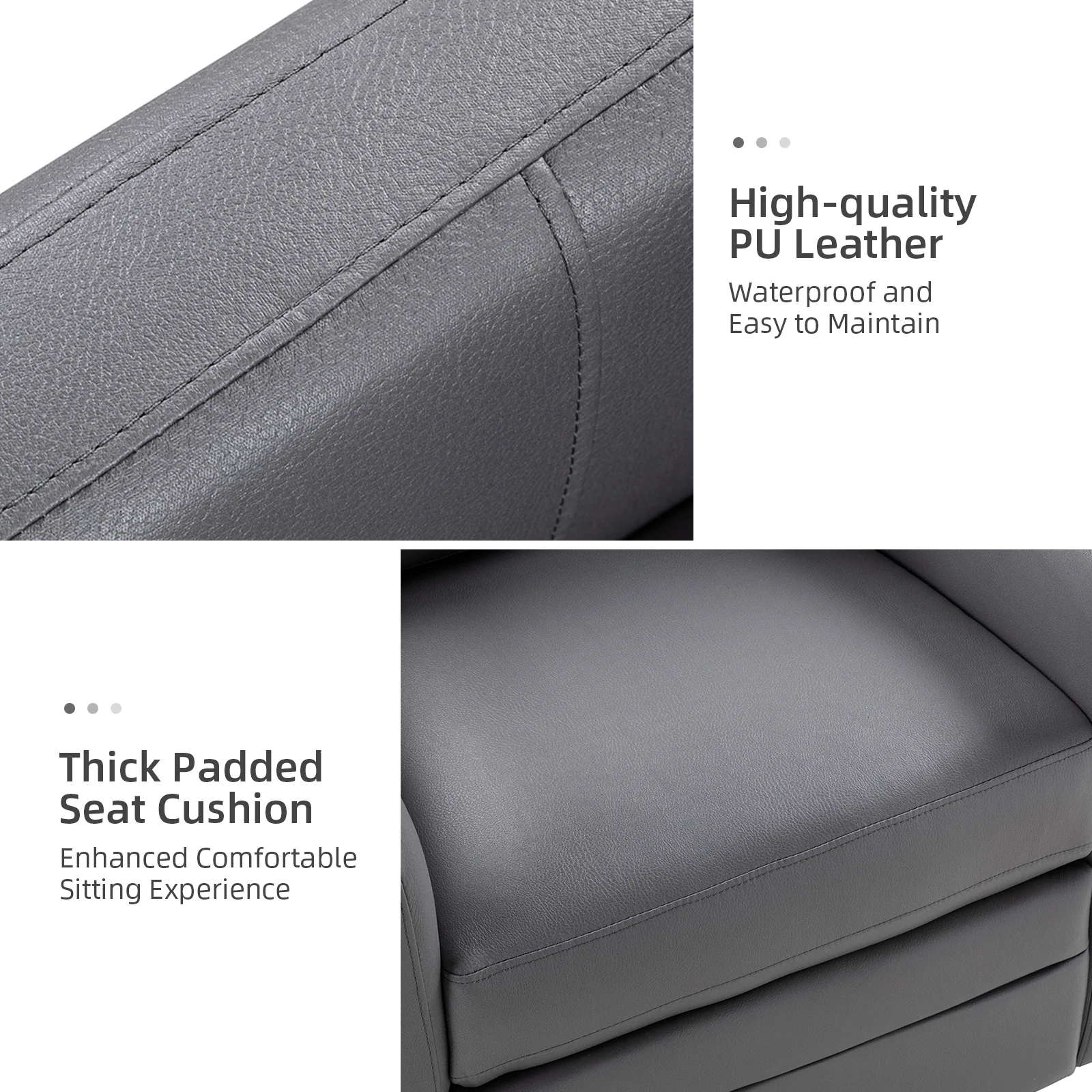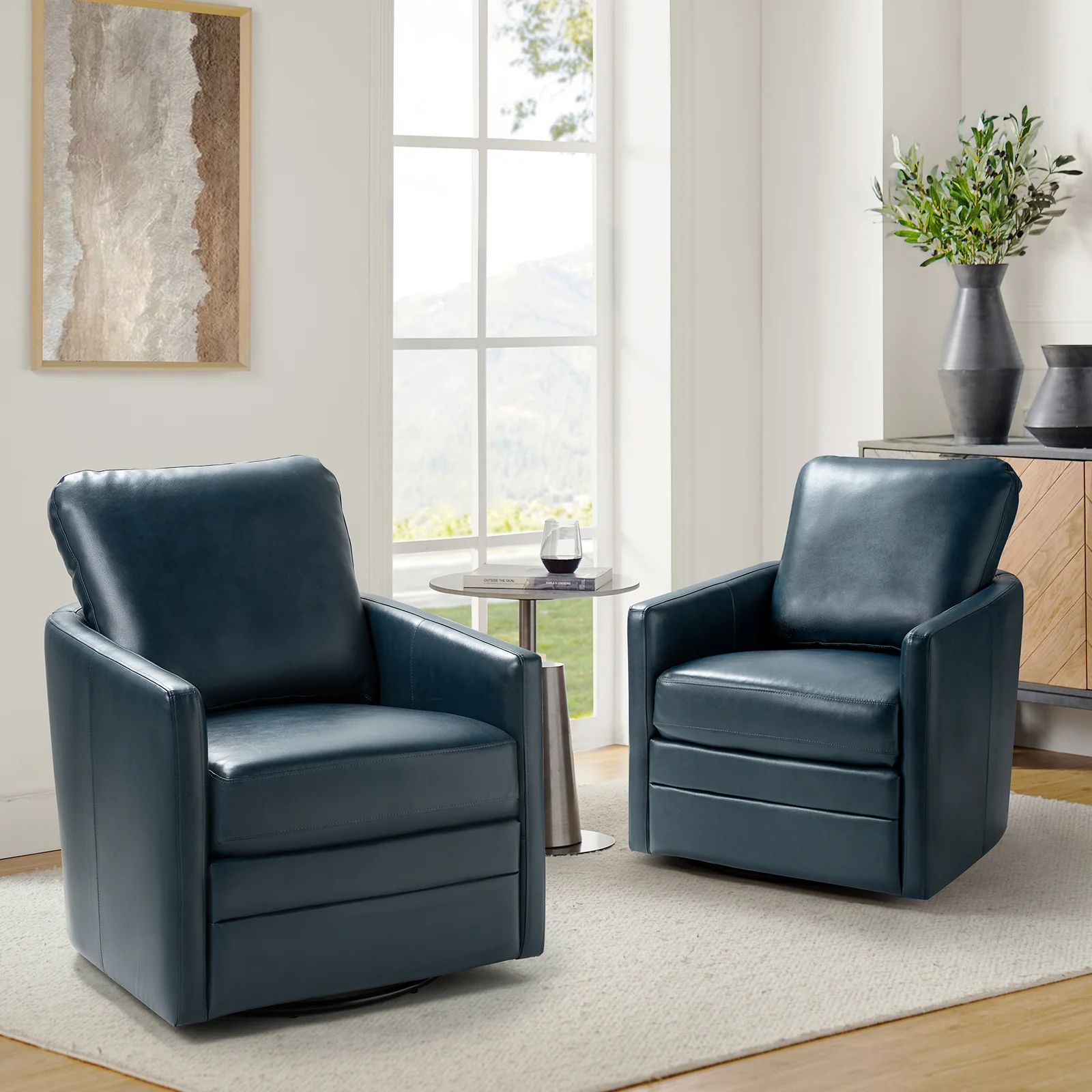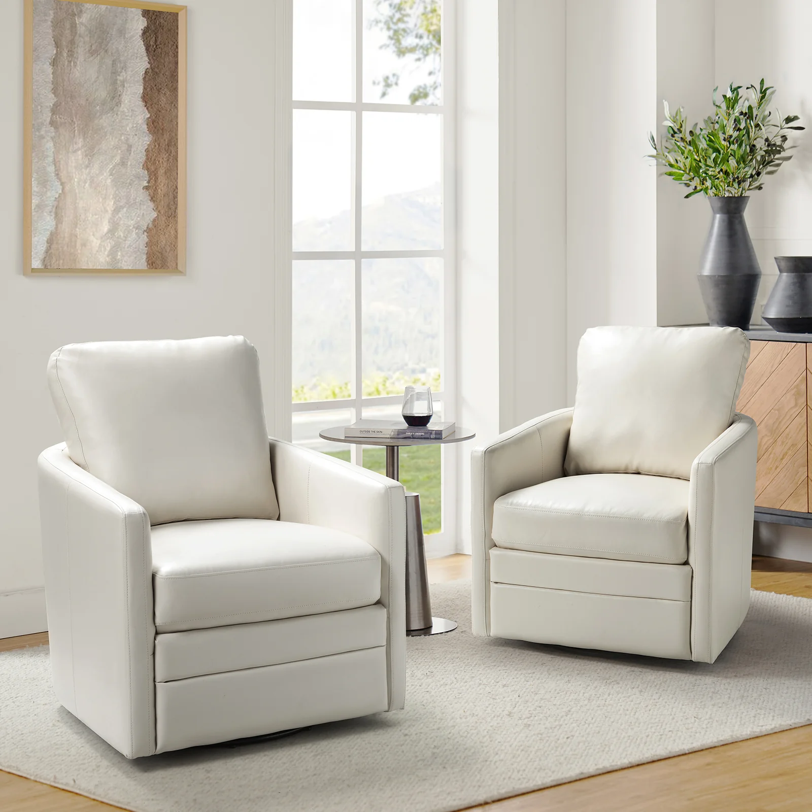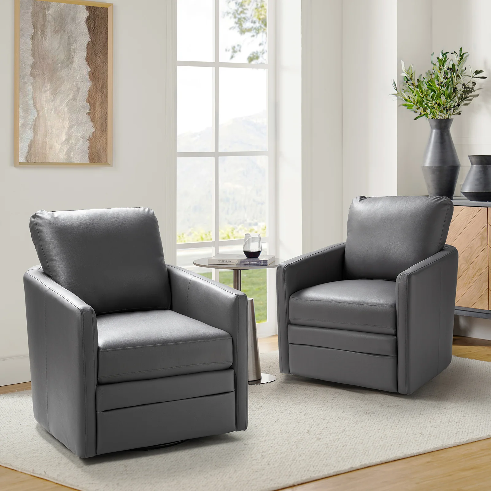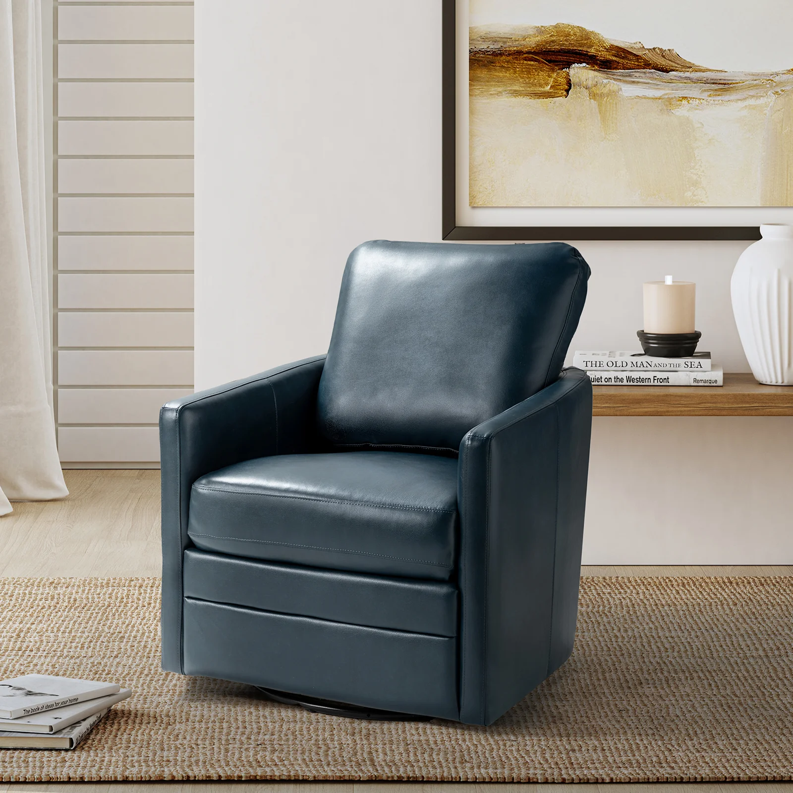 This swivel chair features PU leather upholstery and a sleek metal base for a gorgeous look in your living room. Its frame is made from solid and manufactured wood, and its circular metal base has a black finish that complements any color palette. The back cushion can not be fixed so you can remove it as your need, and the core can take out. It allows you to rest in a variety of ways and they can enhance comfort, durability, and resistance to the tests of time. The chair's comfort belies its sturdy and durable PU, built-in pocket spring, and sturdy construction. Let your body sink into the foam-filled soft upholstery, and recline the back for the ultimate in relaxation after a stressful day. This swivel chair will create a cozy, contemporary look for years to come.